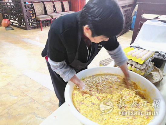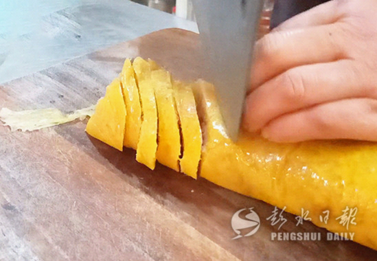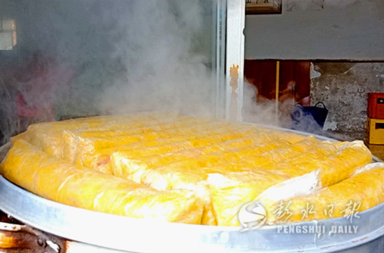 中國彭水網(wǎng)(全媒體記者 張茂玉 楊 靜 文/圖)三香,又叫包圓或卷子,是將五花肉、紅薯淀粉、土雞蛋等食材按一定比例蒸制而成。三香口感香嫩潤滑、美味可口,營養(yǎng)搭配合適,又因其易于保存、方便攜帶,成為了彭水人外出求學或打工時必帶的家鄉(xiāng)美食。
